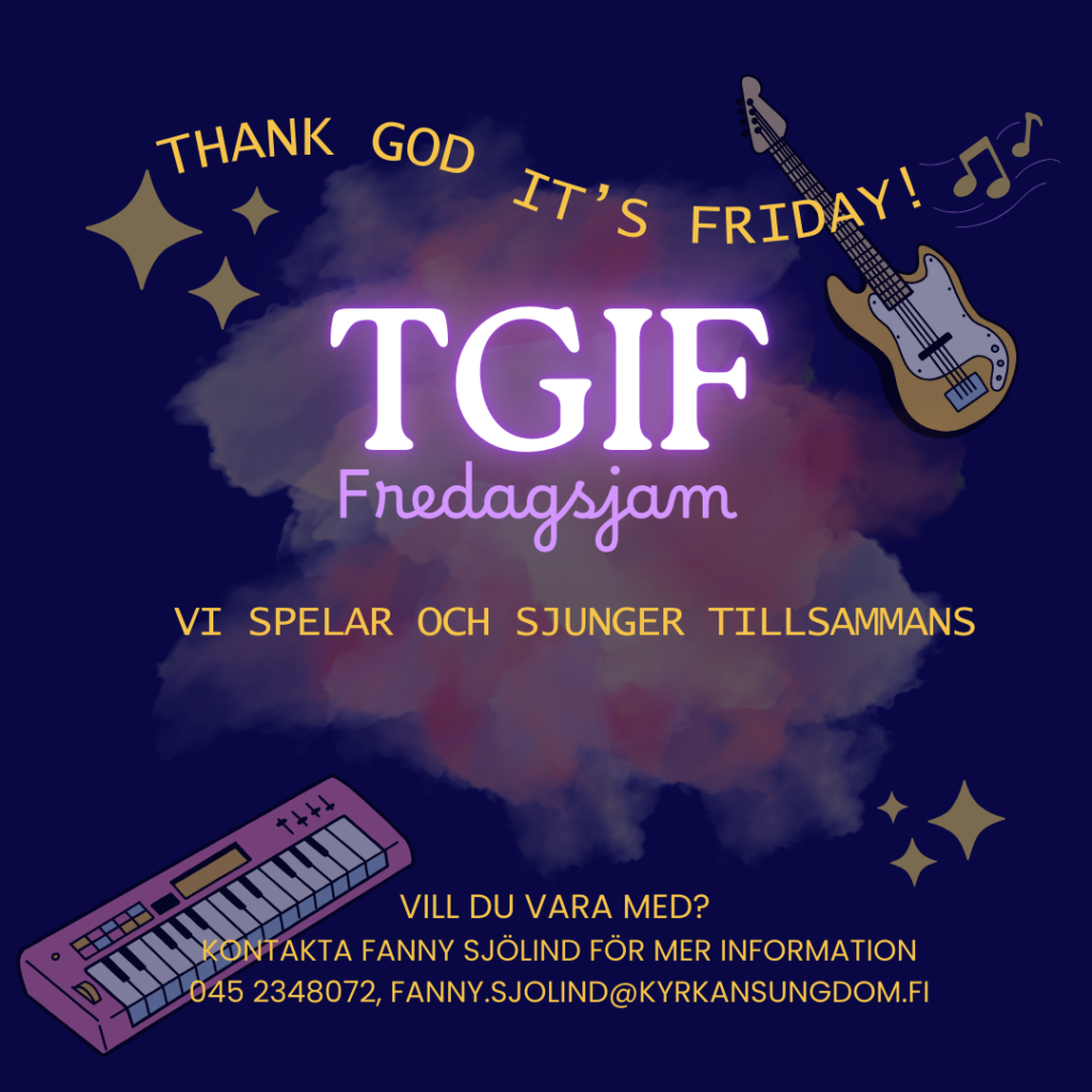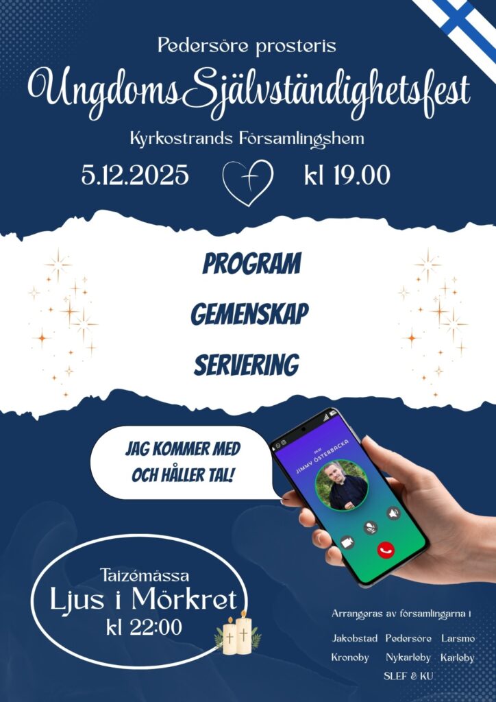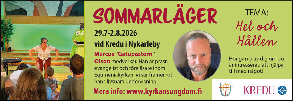 Kontaktinfo: carola.saloback@gmail.com eller KU:s kansli, tel 045 234 8073, kansliet@kyrkansungdom.fi