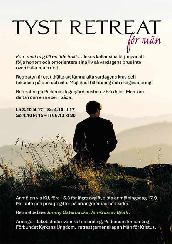 i samarbete med Karleby sv församling. Anmälan från 4.5 kl. 18 till 11.5 på karlebysvenskaforsamling.fi.